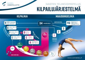 Lisätietoja Naisten telinevoimistelusta löydät Suomen Voimisteluliiton nettisivuilta.